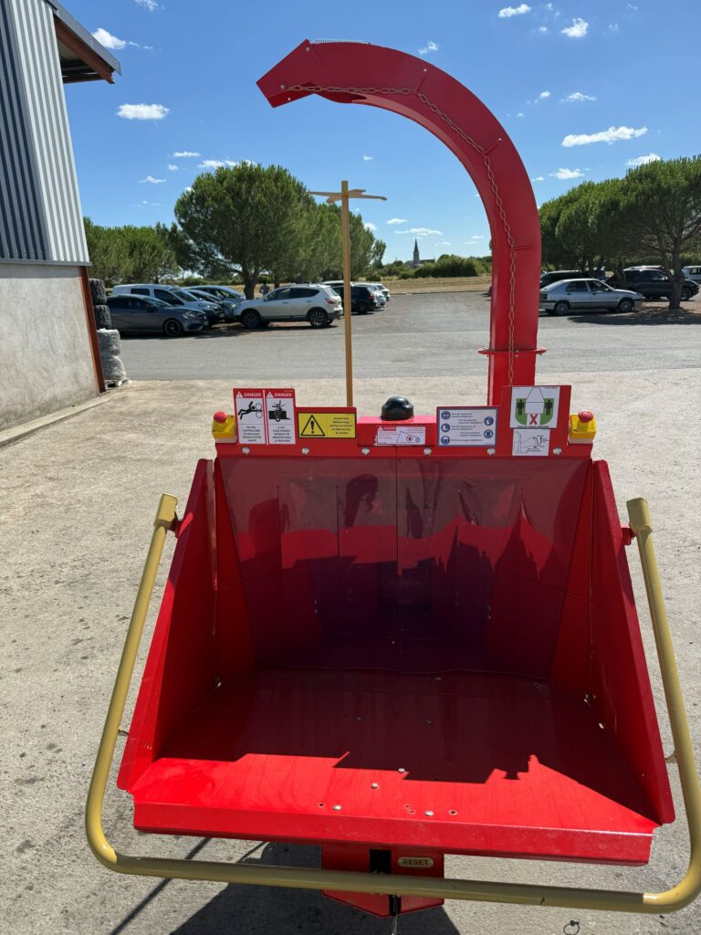 Pensé pour les exploitations, ETA et collectivités, le VORAX 150 avale jusqu’à 150 mm de diamètre. Son rotor Ø 610 mm avec 3 couteaux et 6 pales assure des copeaux réguliers et une éjection soutenue. L’ameneur Ø 215 mm et la régulation automatique stabilisent le débit, même sur bois difficiles, tandis que l’éjection jusqu’à 2,70 m facilite l'évacuation dans une remorque. Un broyeur conçu et fabriqué en France pour un usage pro au quotidien.