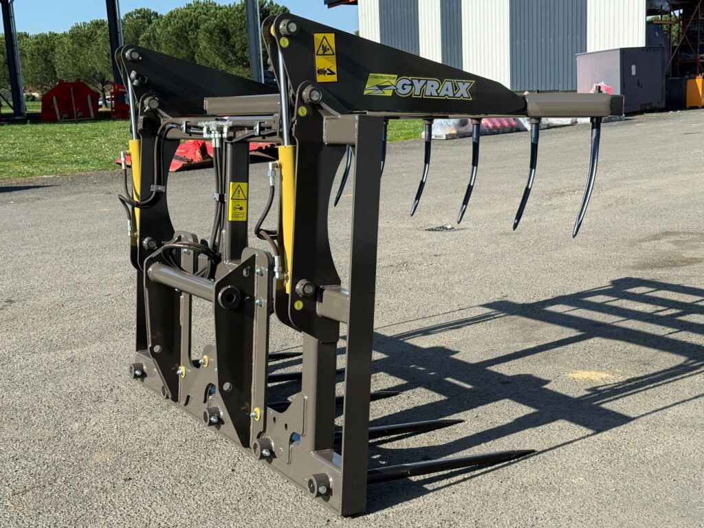 Les fourches à paille GYRAX sont parfaitement adaptées à la plupart des télescopiques, offrant une solution robuste et efficace pour la manipulation de la paille et d'autres matériaux agricoles.