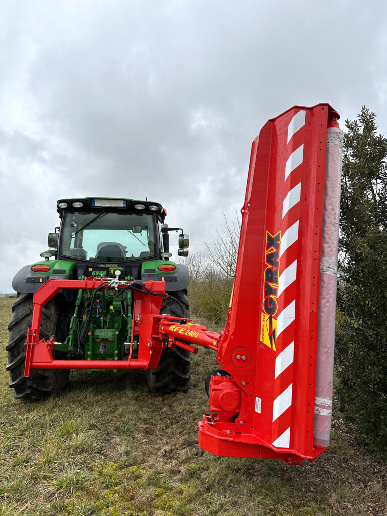 Les rotofaucheuses Gyrax RFE sont conçues pour les chantiers d’entretien les plus exigeants : bords de routes, fossés, talus et haies travaillés à longueur de journée par des ETA, CUMA ou collectivités fortement équipées. Avec des largeurs de travail de 2 à 2,40 m et une compatibilité tracteurs de 90 à 120 ch, la gamme RFE exploite pleinement le potentiel des gros gabarits.