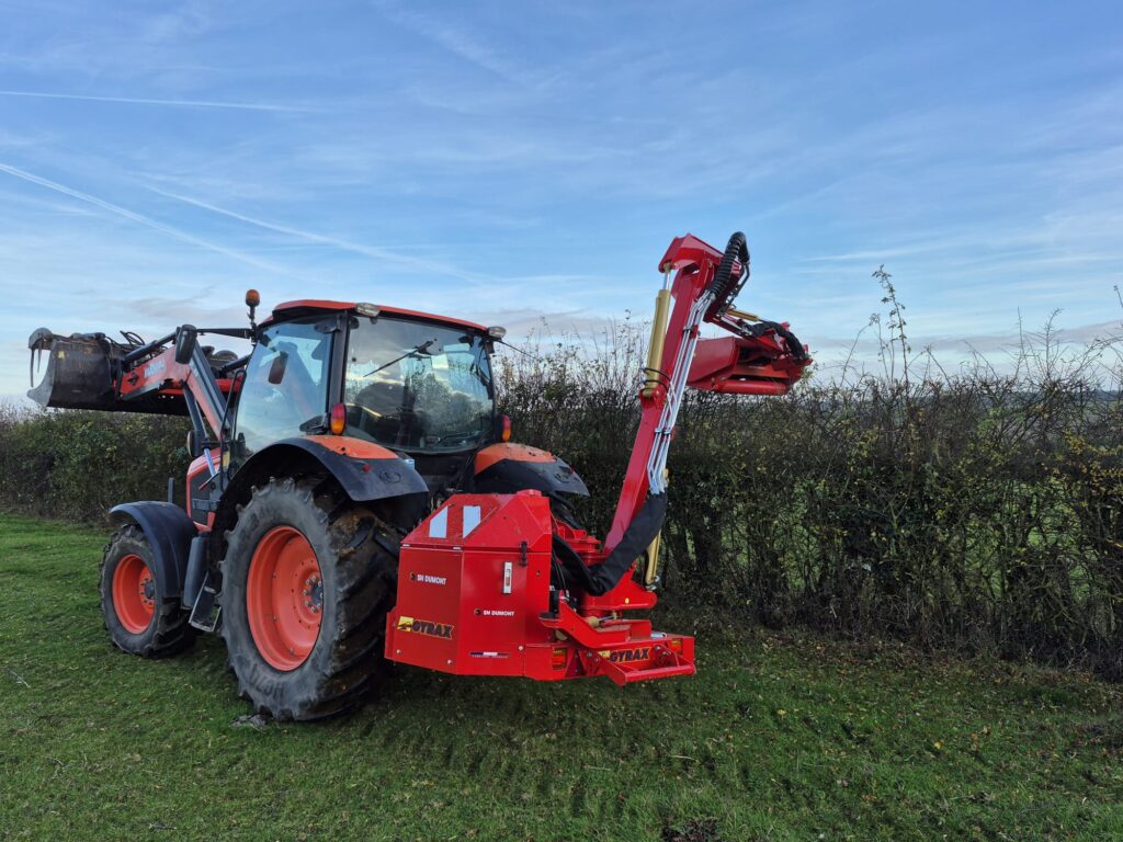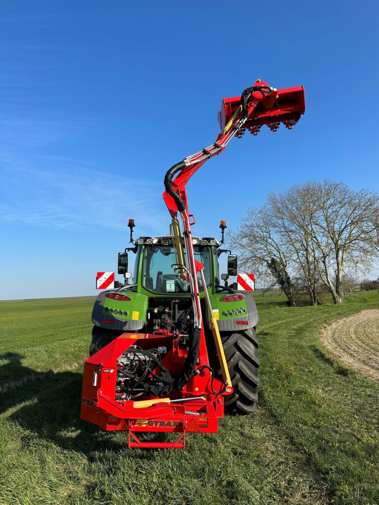 Vue du bras avancé +70mm de profil, permettant une meilleur visibilité au travail et un meilleur confort d'utilisation pour les épareuses Gyramax.