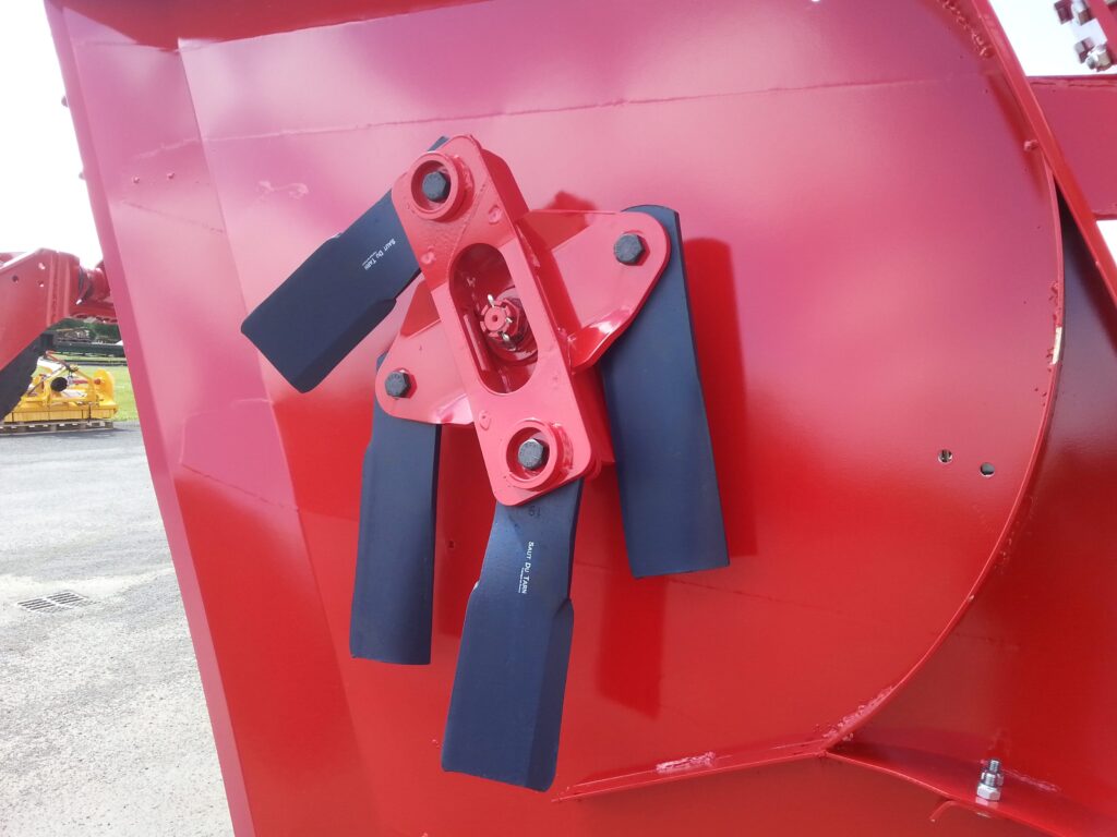 La coupe est assurée par 3 rotors équipés de lames aspirantes (épaisseur 12 mm) pour obtenir un rendu propre en prairie. Selon les besoins, les rotors sont prédisposés pour évoluer vers un montage 4 lames. La hauteur de coupe réglable de 4 à 11 cm permet d’ajuster la finition selon la saison, la densité d’herbe et l’objectif (pâture, entretien, reprise).