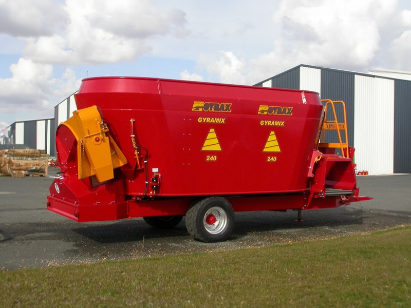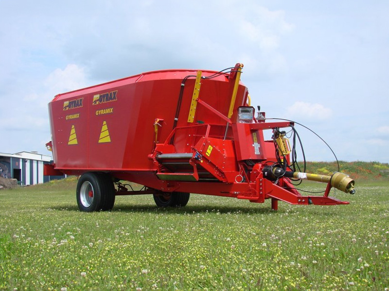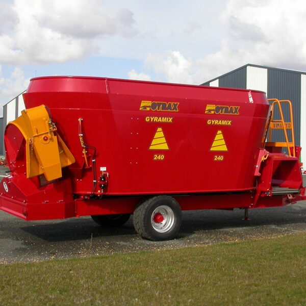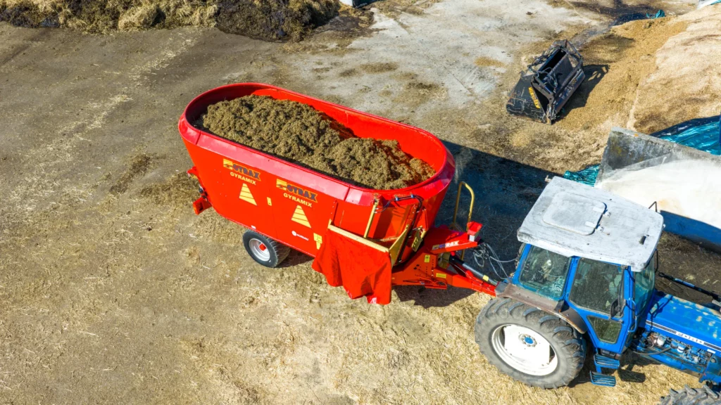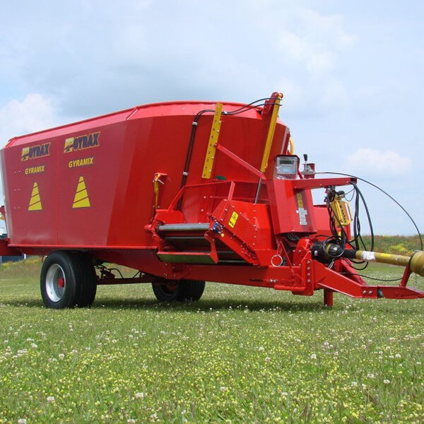 Gyramix bi-vis s’adresse aux élevages qui veulent un mélange homogène et un débit régulier sur des volumes 18-27 m³. Les deux vis verticales travaillent tous les fourrages en respectant la fibre ; la pesée intégrée (lecture directe ou programmable) sécurise les rations. Côté distribution, la machine s’adapte au bâtiment : sortie directe gauche/droite, tapis frontal TFIX/TFIR (déportable) ou tapis latéral repliable. Avec l’option turbine (avant ou arrière), la même machine assure mélange + paillage, en limitant les allers-retours et les coûts d’équipement.
