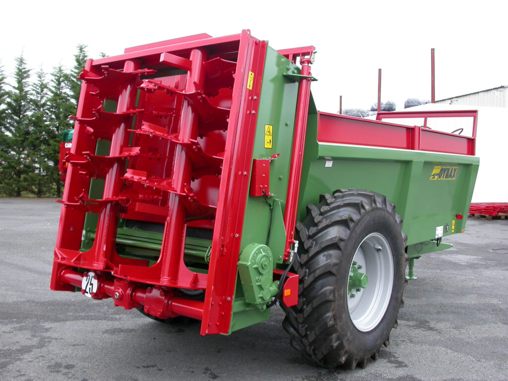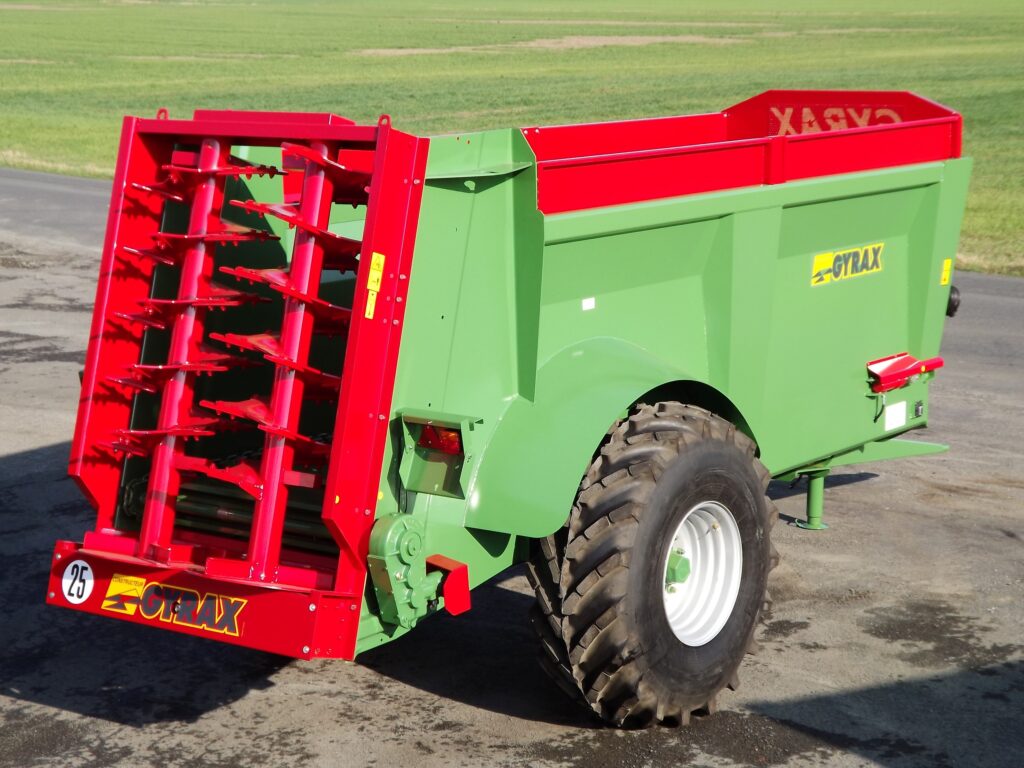 La structure bénéficie d’un haut de caisse monobloc 5 plis, de renforts soudés en continu, d’une flèche doublée et d’un traitement anticorrosion complet : grenaillage après soudure, primaire haute tenue et peinture polyuréthane. La caisse assure une durabilité élevée, même avec des fumiers très humides.