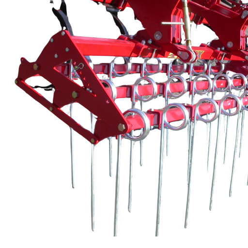 Le châssis 3 poutres à grand dégagement (680 mm) et pas de 120 mm assure un excellent passage des résidus. Les dents vibrantes en acier forgé, montées sur brides renforcées, garantissent pénétration et émiettement homogènes.