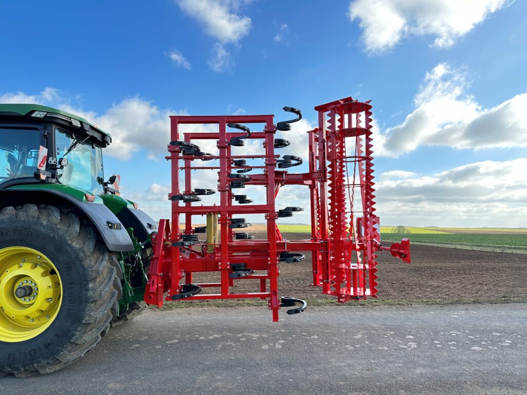 La herse peigne jusqu’à 3 rangées améliore le nivellement, tandis que les roues avant et le rouleau règlent finement la profondeur. La barre oscillante optimise le suivi du terrain.